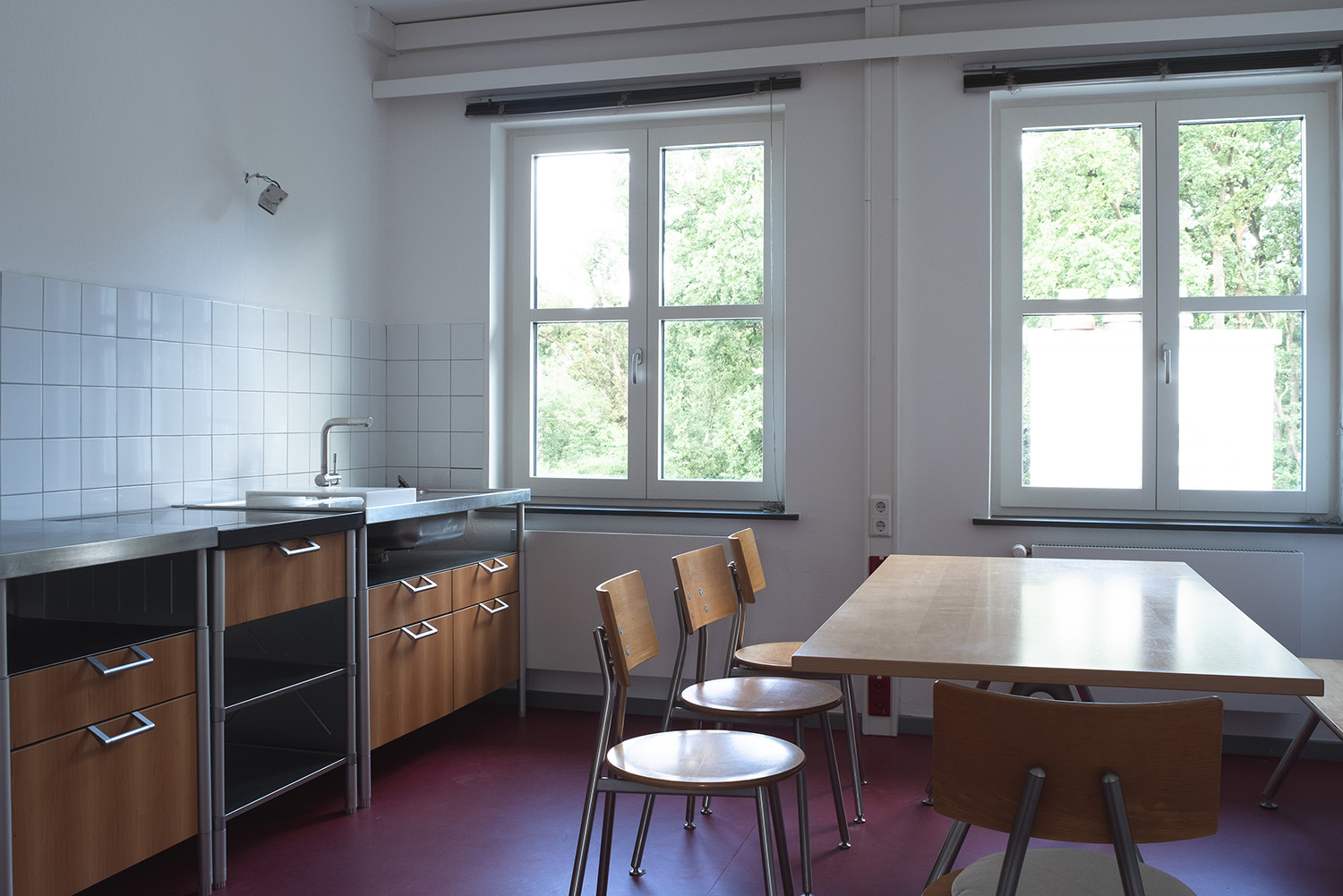 Denkmalgerechter Ersatz sämtlicher Stahlfenster der Produktionshalle mit Schweizer Stahlprofilen von Ottostumm. Ersatz der Kunststofffenster im Bürohaus durch dreifach verglaste Holzfenster mit glastrennenden Sprossen und Fensterbänke aus Grauwacke